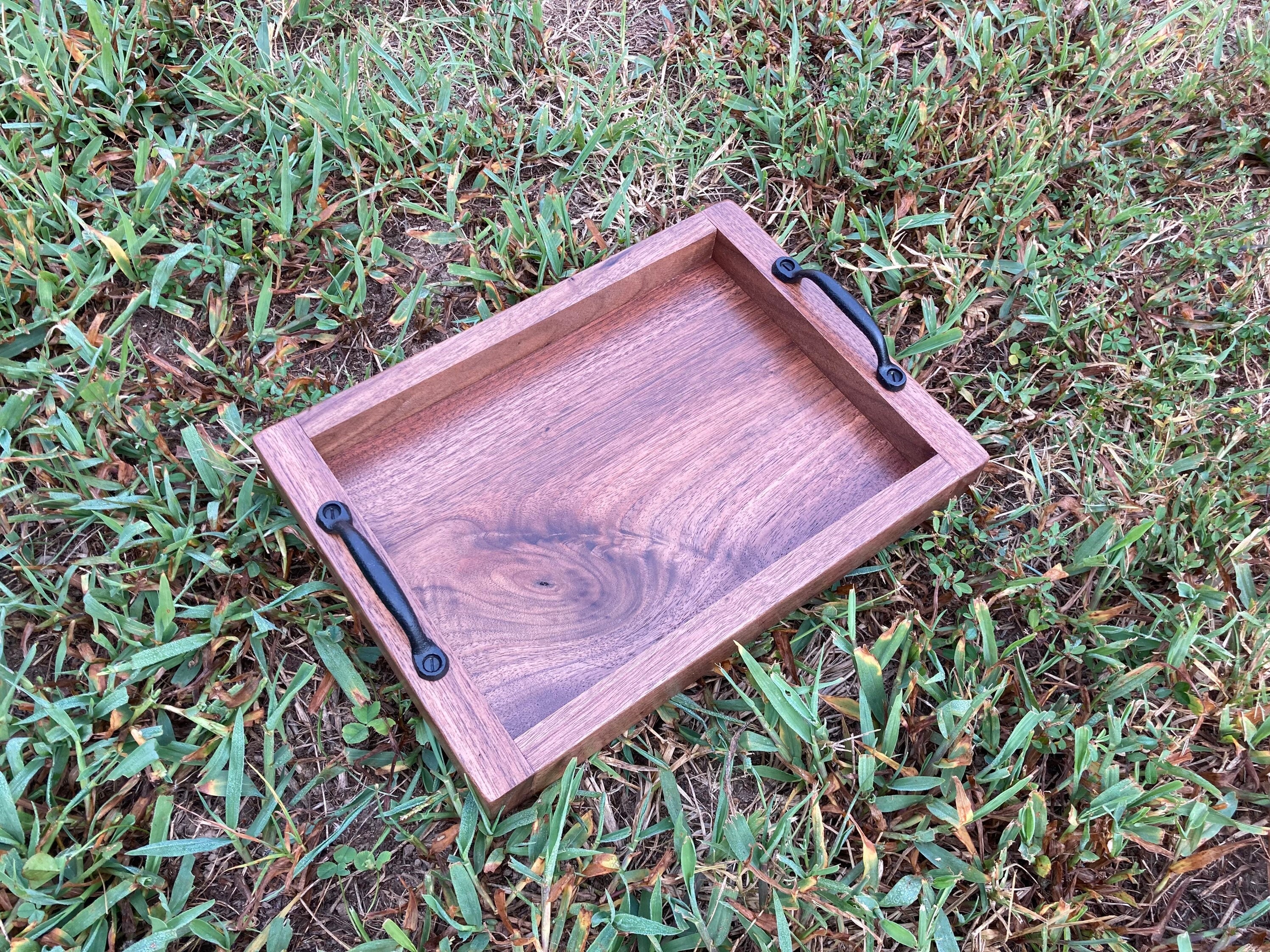 A beautifully scripted gold text is perfectly centered to display the right vibe for your themed seasonal holiday style. Jan 12 Sale 6 Sizes Glantz Solid Wood Tray by Gracie Oaks From 5499 6399 124 Free shipping Groveland Acacia Wood Tray With Handles by Martha Stewart 4899 7. The coordinating black metal handles enhance the look while making it easier to move around the table.